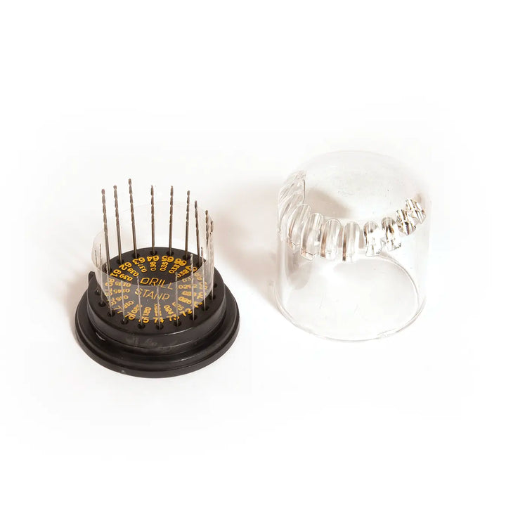 El set de 20 brocas de precisión Excel Blades es ideal para trabajos delicados en modelismo, miniaturas, joyería, resina y materiales plásticos. Incluye brocas del número #61 al #80 fabricadas en acero rápido de alta velocidad, almacenadas en un práctico organizador tipo cúpula que protege y clasifica cada pieza.