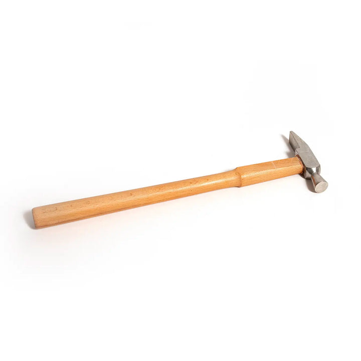 Er verfügt über einen geschmiedeten, polierten Stahlkopf mit einer flachen und einer meißelförmigen Seite, fest montiert auf einem robusten Holzgriff. Mit einem Gewicht von nur 56 g ermöglicht er präzises Arbeiten ohne Materialschäden.