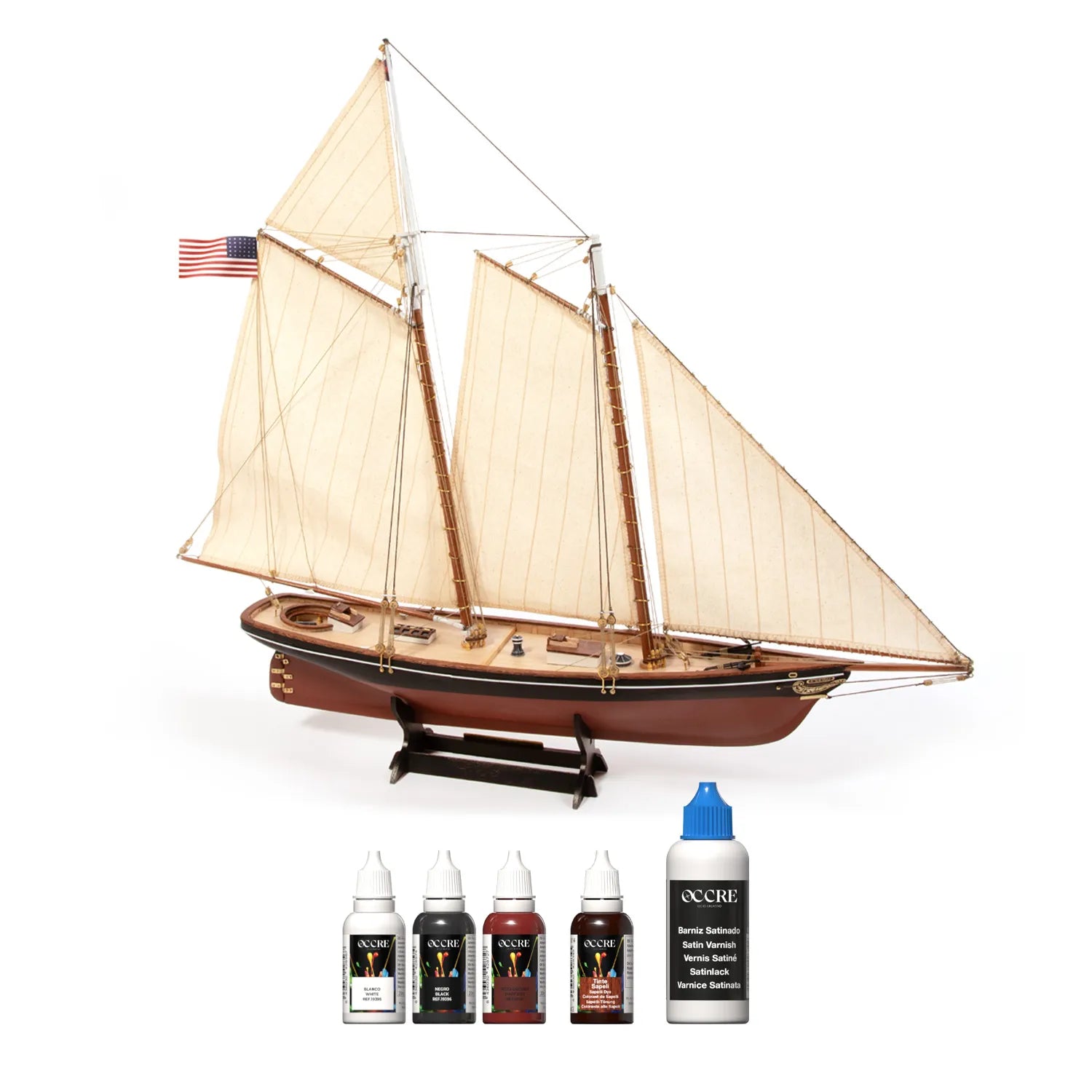 The acrylic paint set for the America Yacht Model – America’s Cup includes a carefully selected range of colours, stains, and varnish, specifically chosen to achieve an accurate and high-quality finish during the construction of the model.