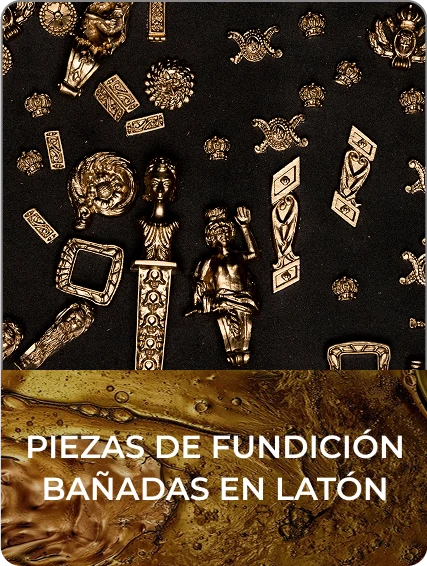 Metal fundido y latón: Ornamentación y decoraciones de metal fundido con baño en acabado latón, cadenas de latón, cañones torneados de latón macizo, soportes de peana en forma flor de lis con acabado cobre y más.