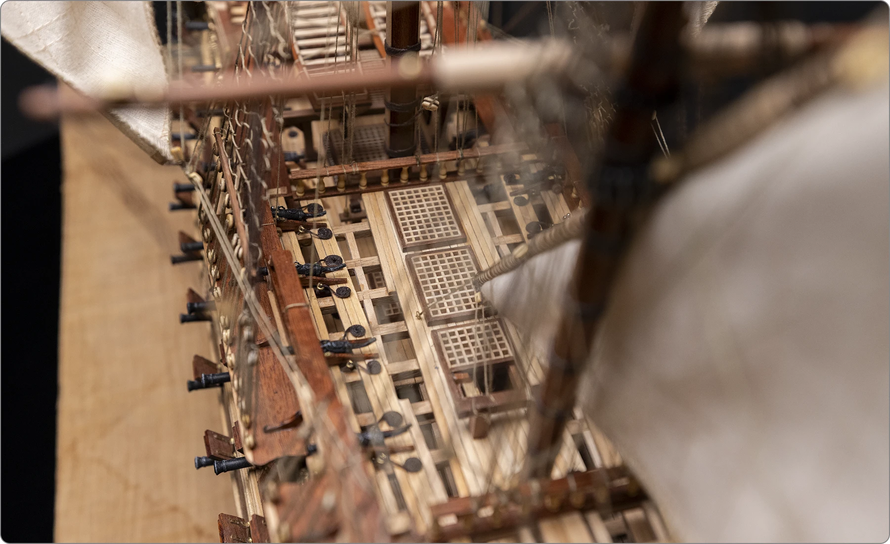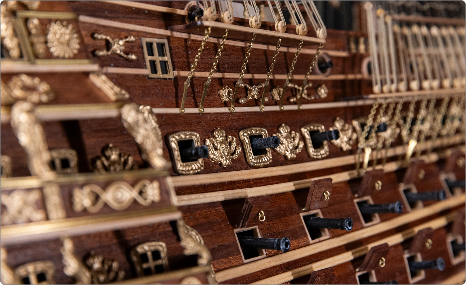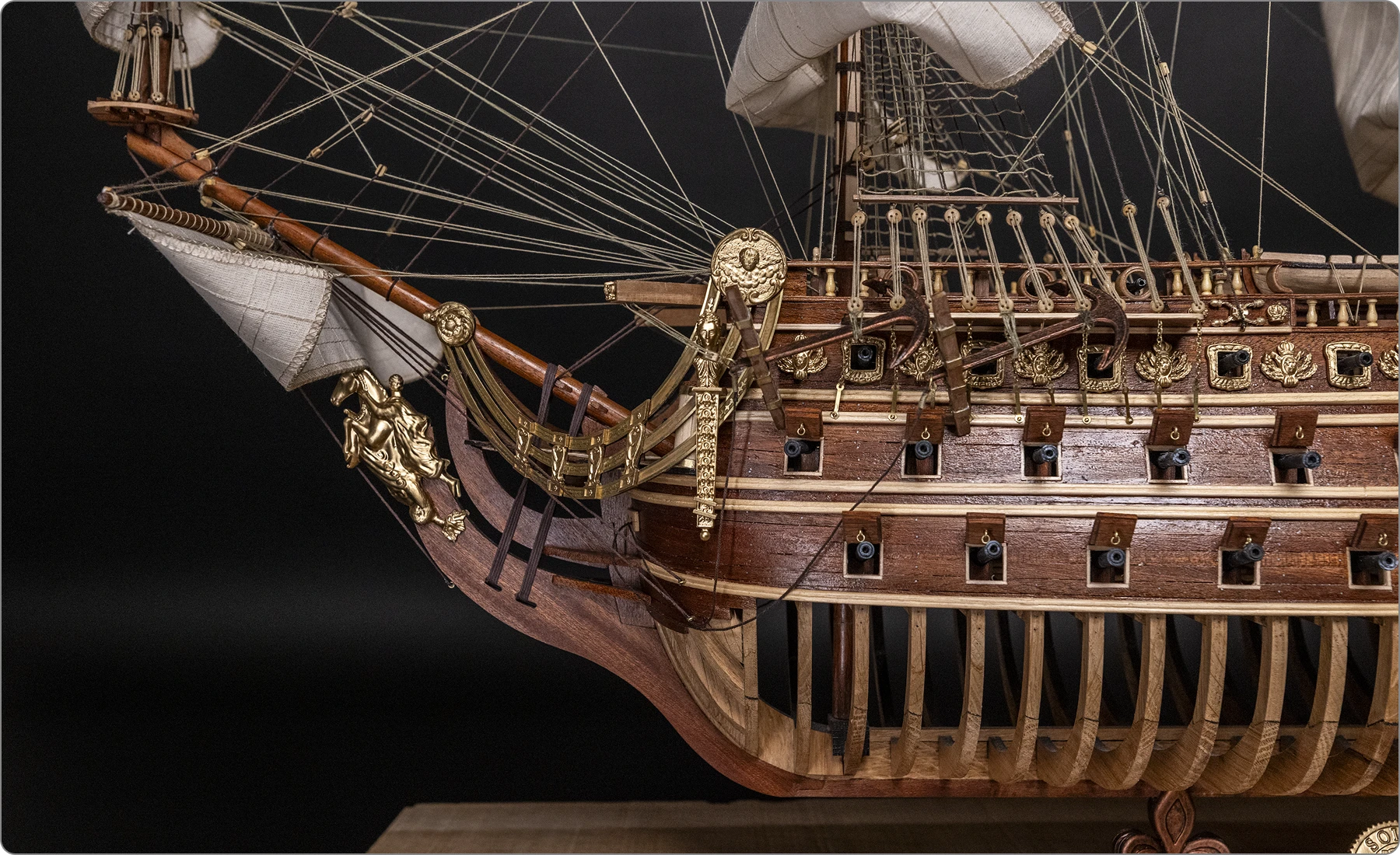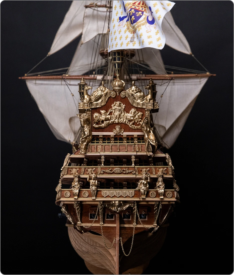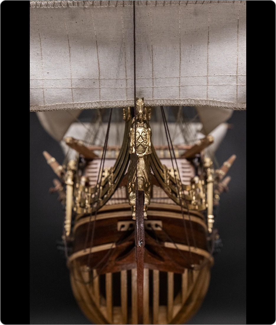 Du mascaron de proue au dernier canon de pont, chaque élément a été reproduit avec une précision historique et technique remarquable.