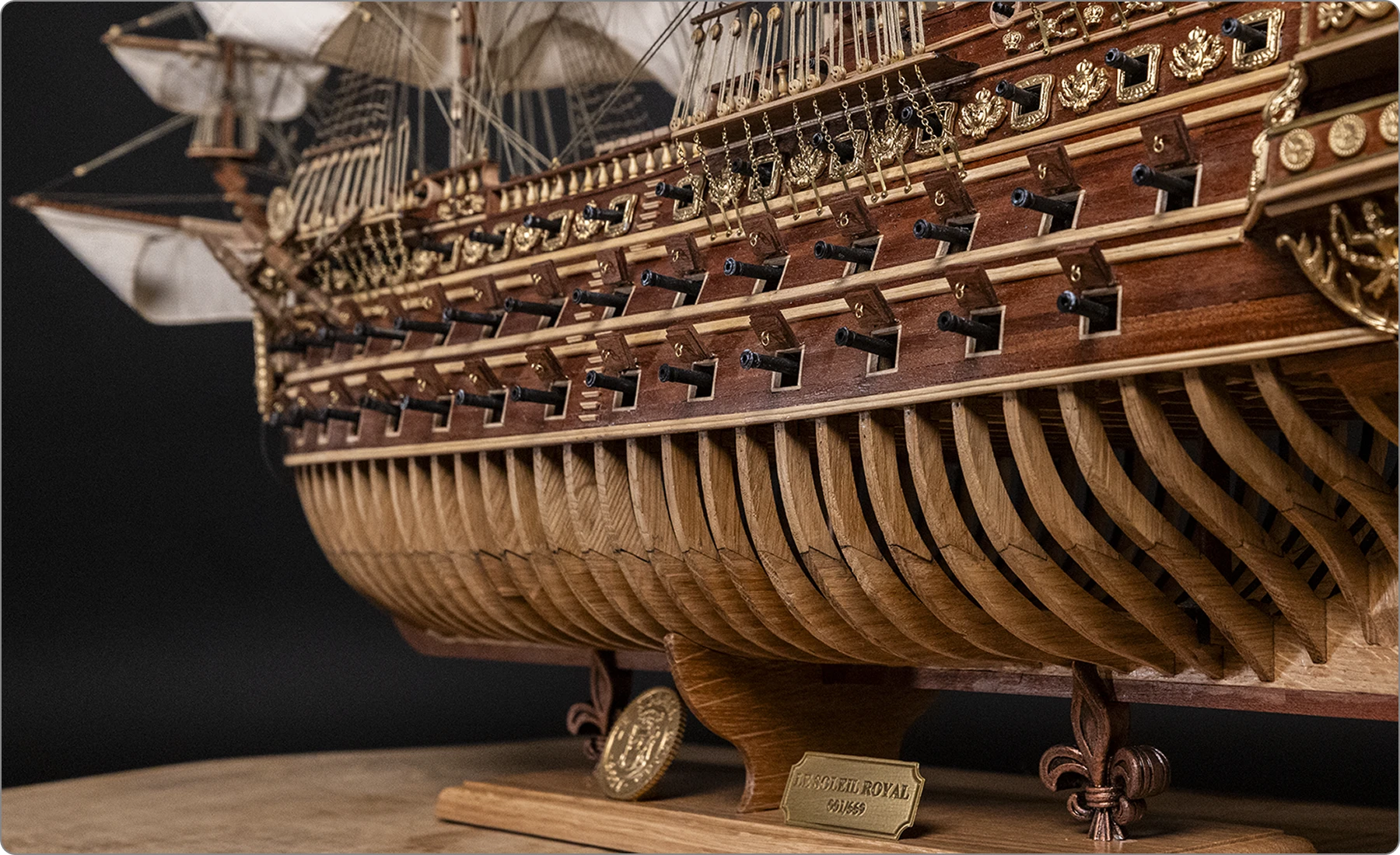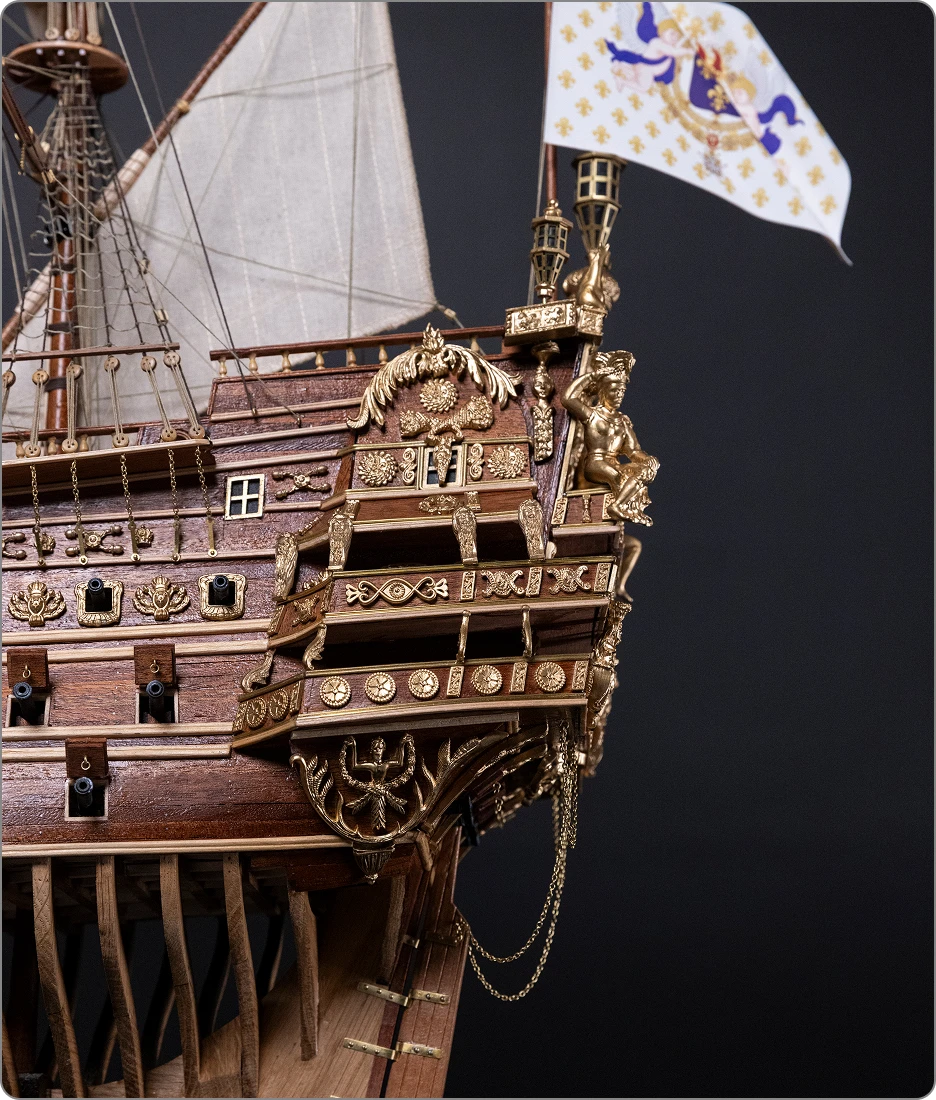 Issu du modélisme historique français (modèle d’arsenal), Le Soleil Royal reproduit fidèlement la manière dont le navire original a été construit, en suivant les plans et techniques des XVIIᵉ et XVIIIᵉ siècles. Couple après couple, selon la structure d’un véritable chantier naval.