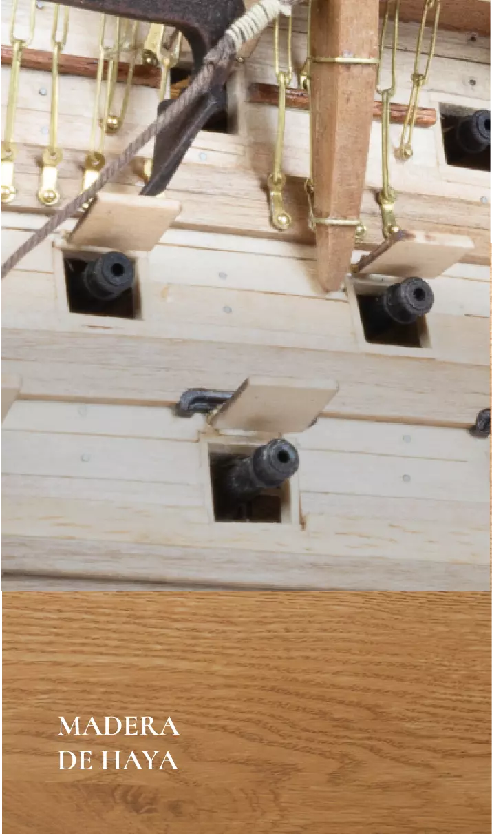 El HMS Victory de OcCre se construye con materiales de vanguardia cuidadosamente seleccionados. La madera de roble macizo, caoba maciza, tilo y haya se combinan para crear una pieza que refleja la excelencia en la artesanía naval. Cada material ha sido elegido por su autenticidad y calidad inigualables.